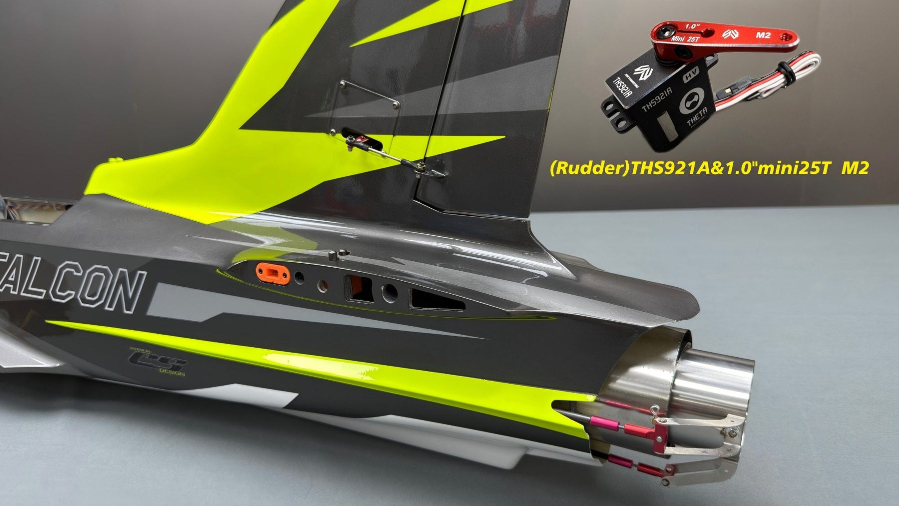 - Rudder: 1x Theta 921A servos with 1" servo arm.